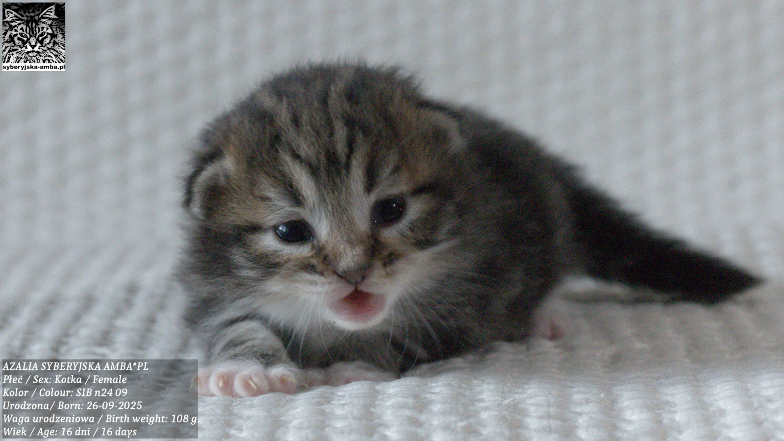 Rodzice: BARSA S.B. SYBERYJSKA AMBA*PL i CH PAT SYBERYJSKA AMBA*PL